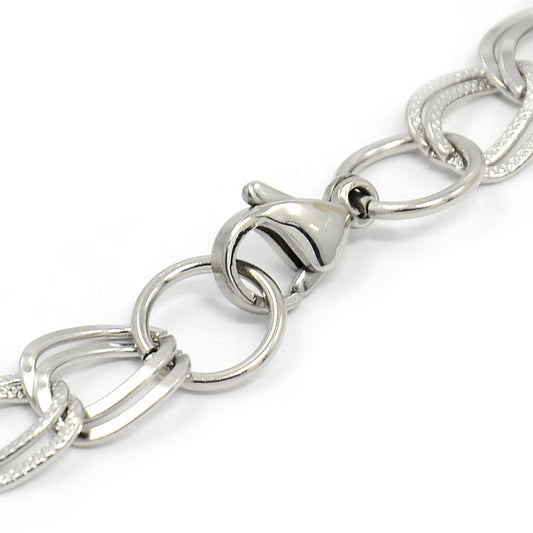 Fashionable 304 Stainless Steel Side Twisted Chain Bracelets, with Lobster Claw Clasps,