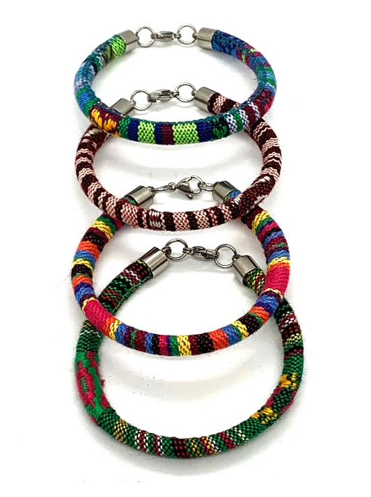 Ethnic Men's Cord Bracelet - Polyester Rope - Colorful Gift For Men Stainless Steel Clasps