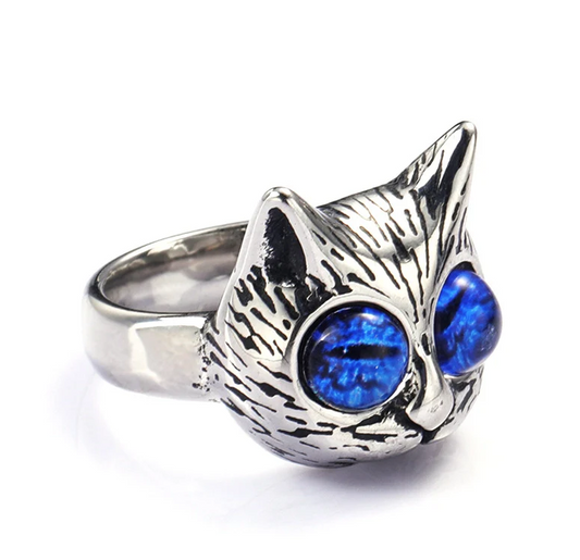 Cute Punk Cat 304 Stainless Steel Glass Men's Rings