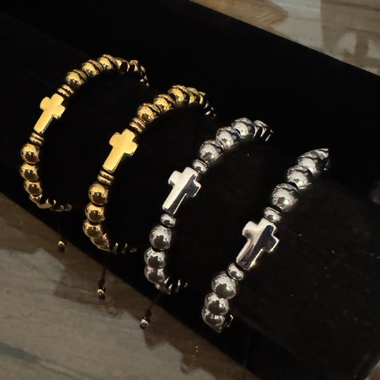 Modern Beaded Bracelet – Gold-Plated Stainless Steel for Men & Women