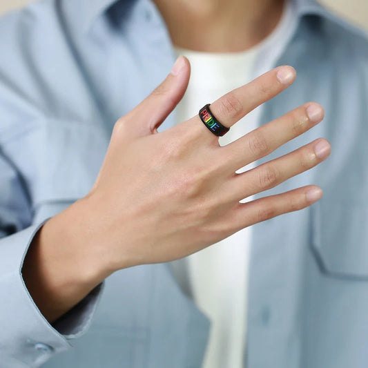 Pride Letters Stainless Steel Ring – Durable Black Plated.