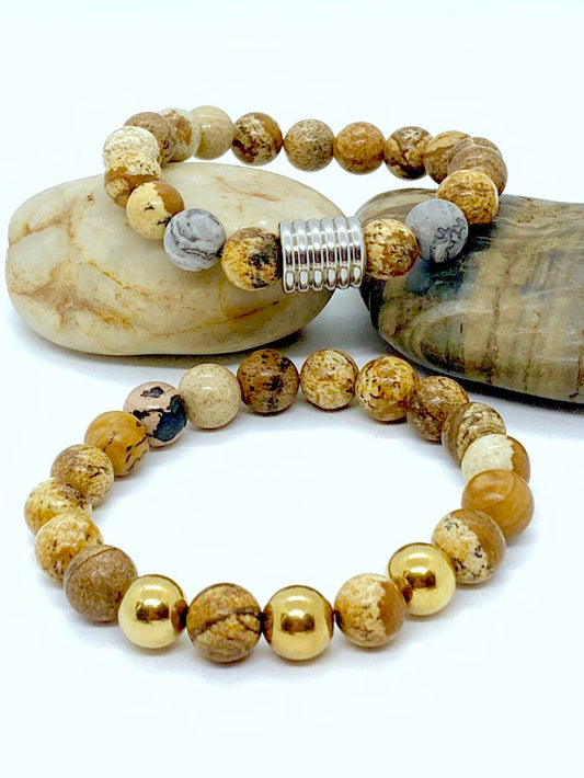Spectacular Natural Gemstone Picture Jasper Unisex Bracelet