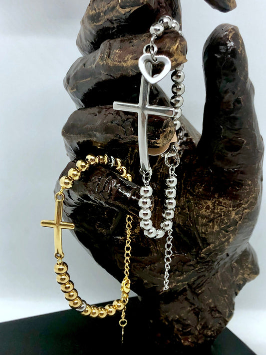 Stainless Steel Cross Bracelet Gold and silver