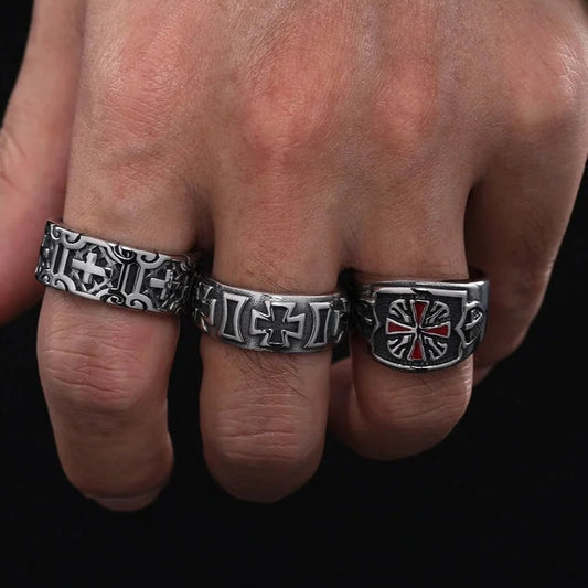 Vintage Punk Red Cross – 316 Stainless Steel Men’s Statement Ring
