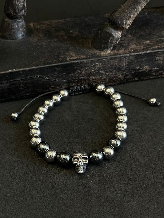 Unisex bracelet, stainless steel beads - Cross, Skull and hematite beats men’s women holiday gift