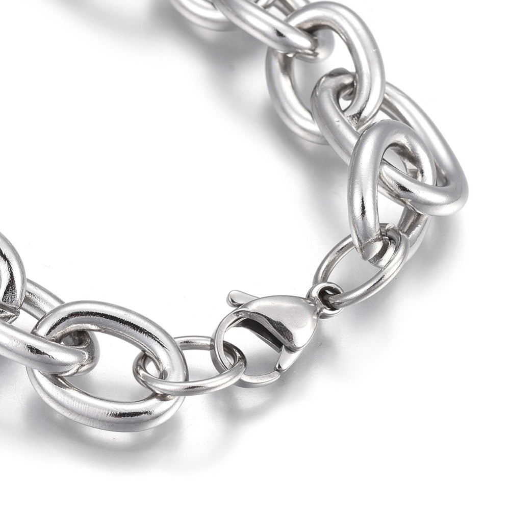 304 Stainless Steel 8mm Cable Chains Bracelets, with Lobster Claw Clasps,
