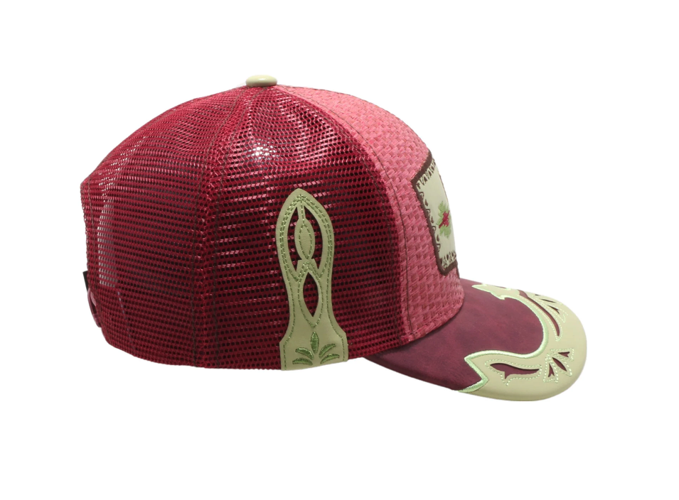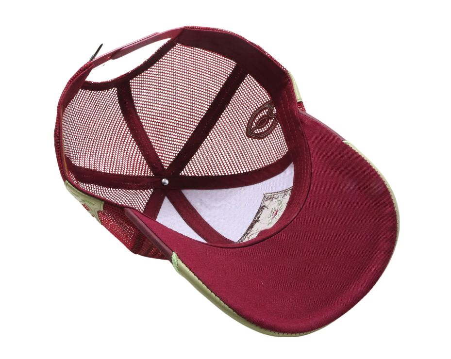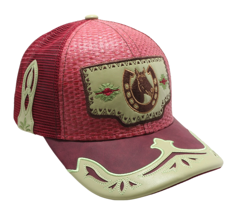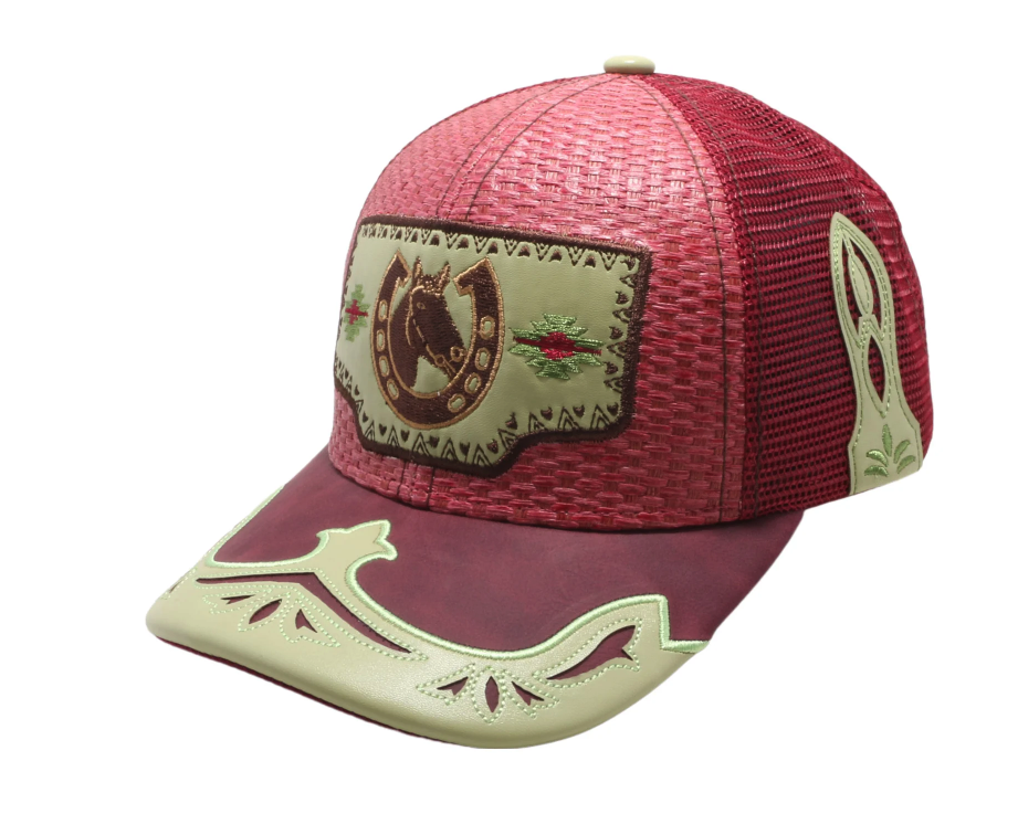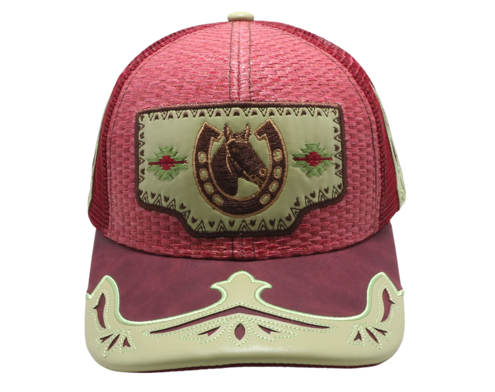 Expertly crafted with breathable straw fabric, this Horse Wine Straw Fabric Trucker Hat is perfect for keeping you cool and stylish in any season. With a classic trucker hat design and timeless wine color, this hat is a must-have for any fashion-forward individual. Grab yours today!