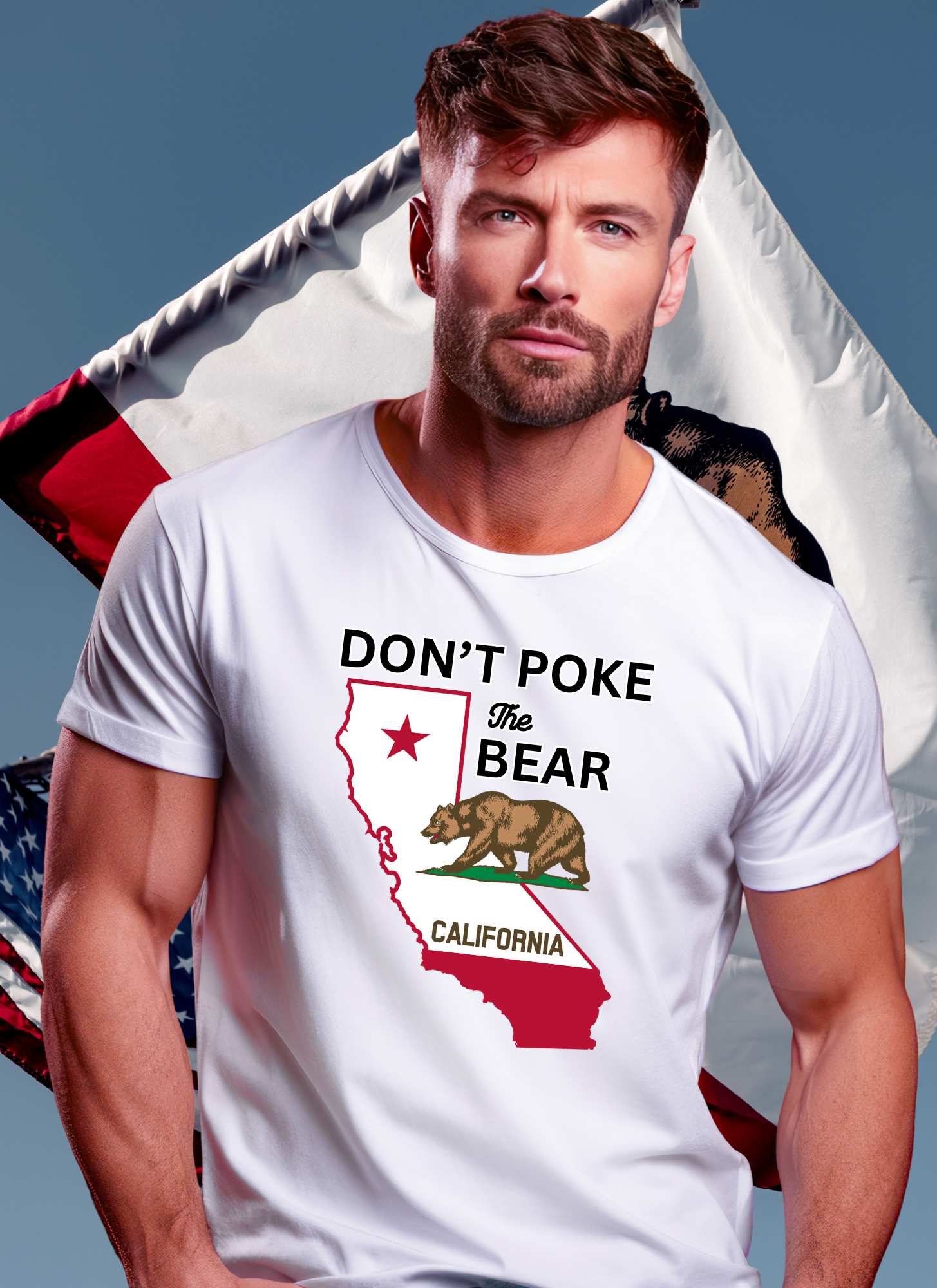 Show your California pride with our bold “Don’t Poke the Bear” T-Shirt. Inspired by a powerful saying from our California's, this tee represents strength, resilience, and a fearless attitude. Made with premium cotton for comfort and style, it’s perfect for everyday wear or making a statement. Whether you’re a proud Californian or just love bold designs, this shirt is a must-have for your collection.