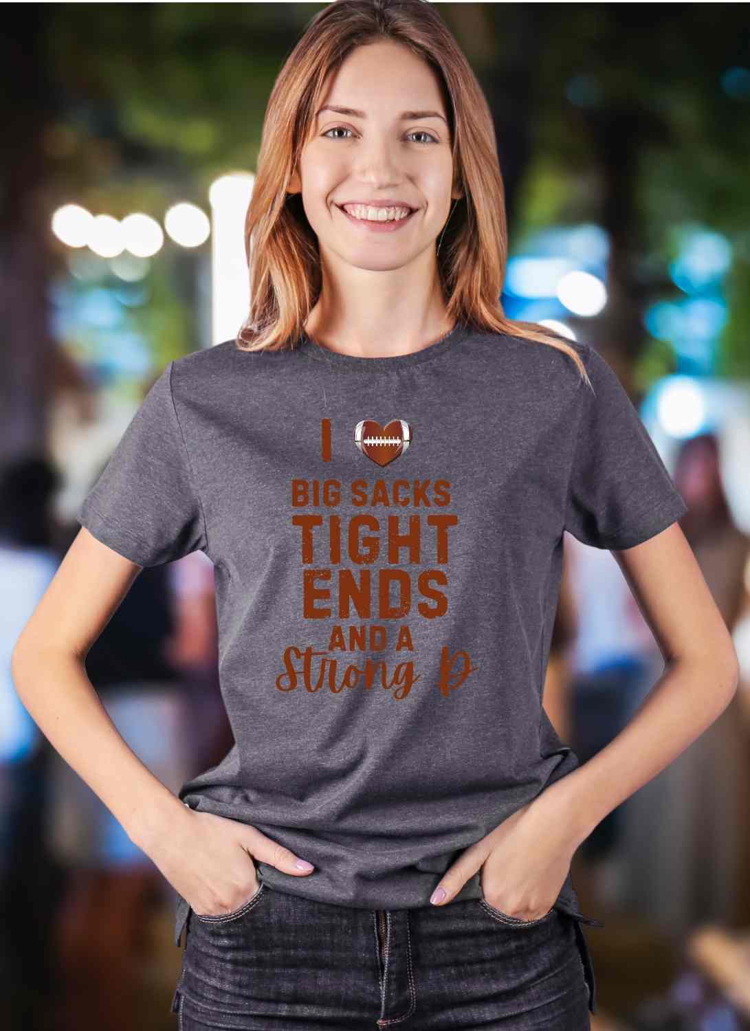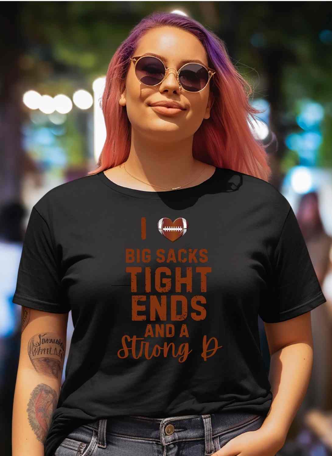 I Love Big Sacks Tight ends and Strong D Statement T-shirt Casual Cotton Top Summer Breathable Fabrics