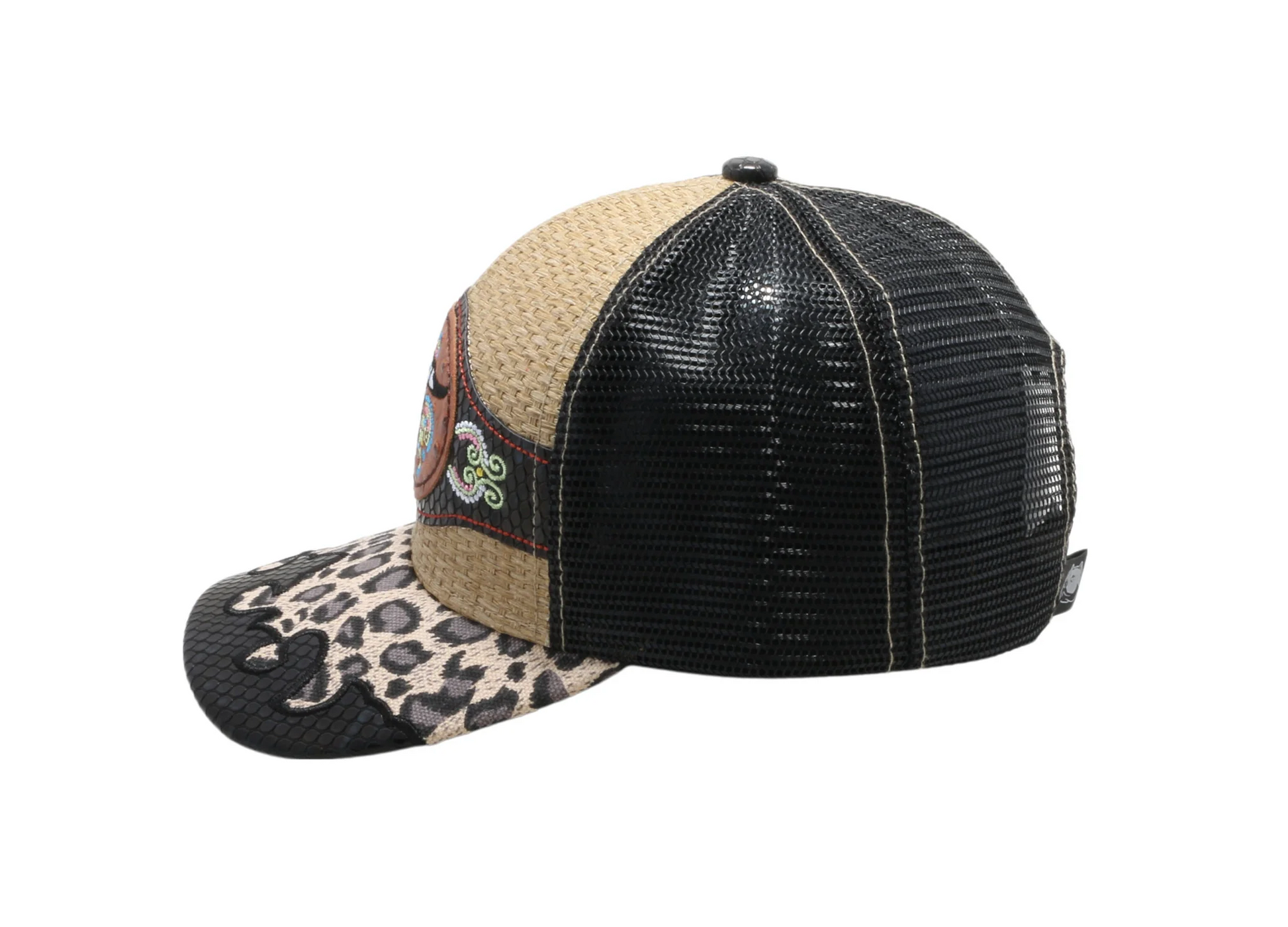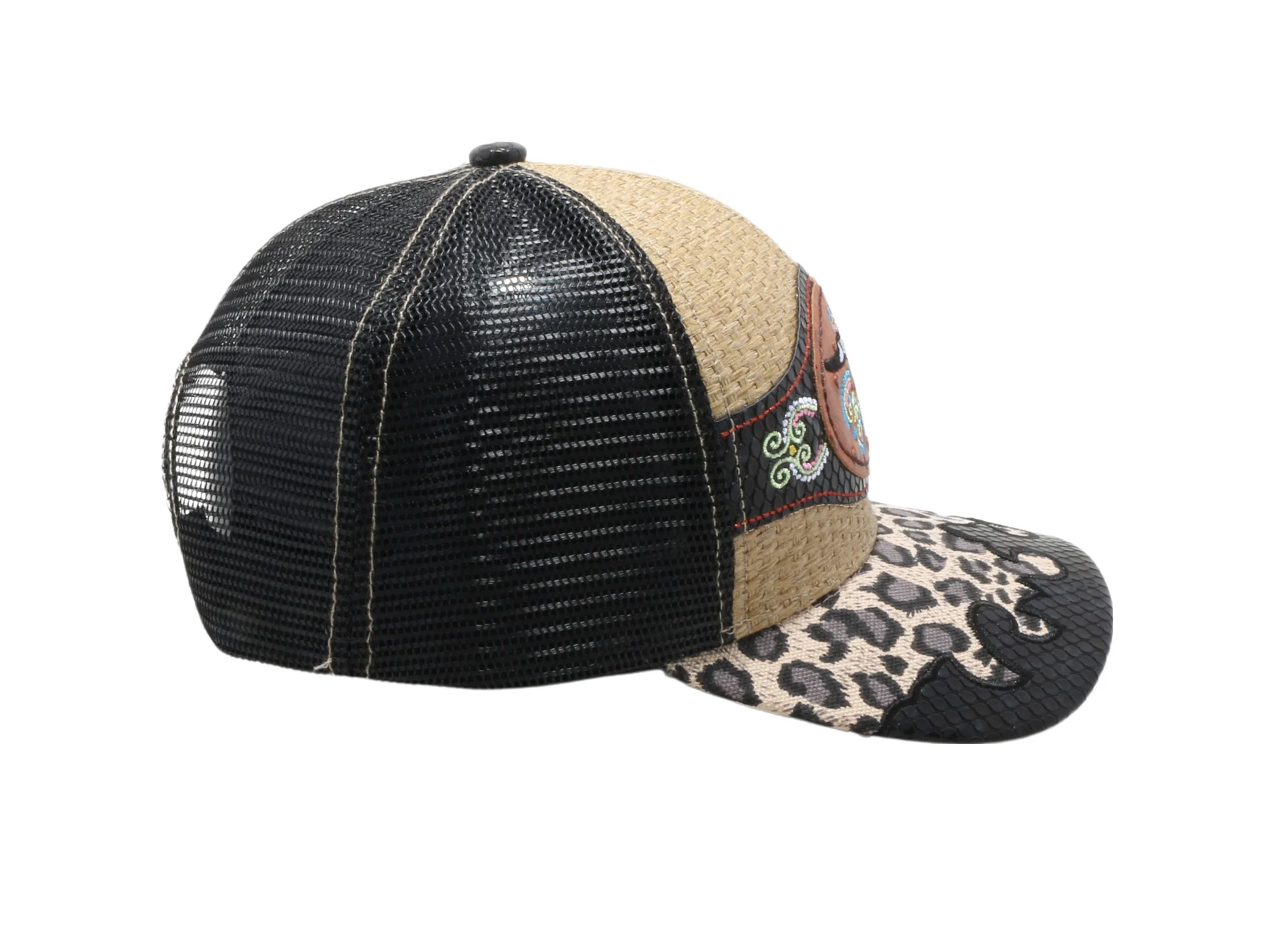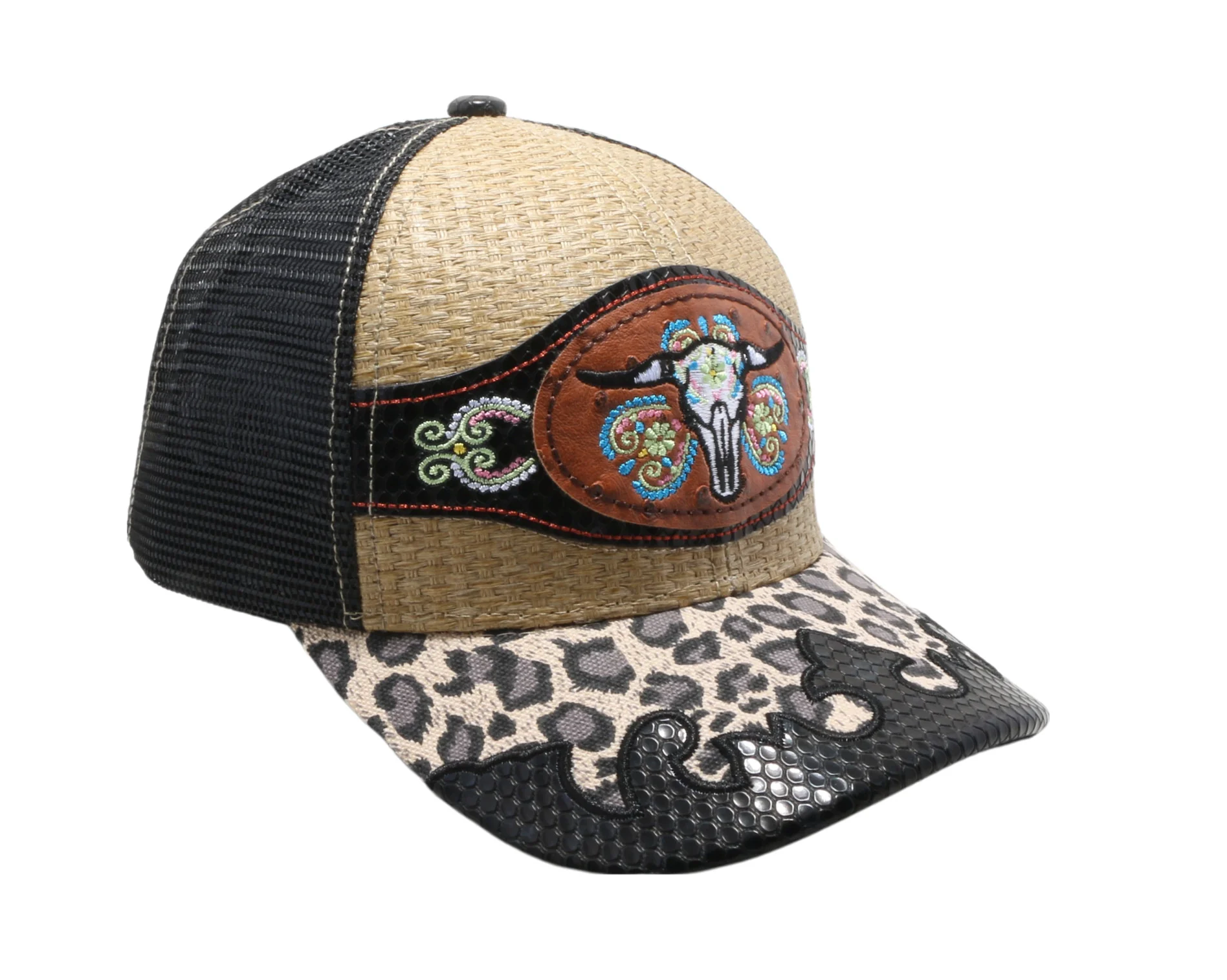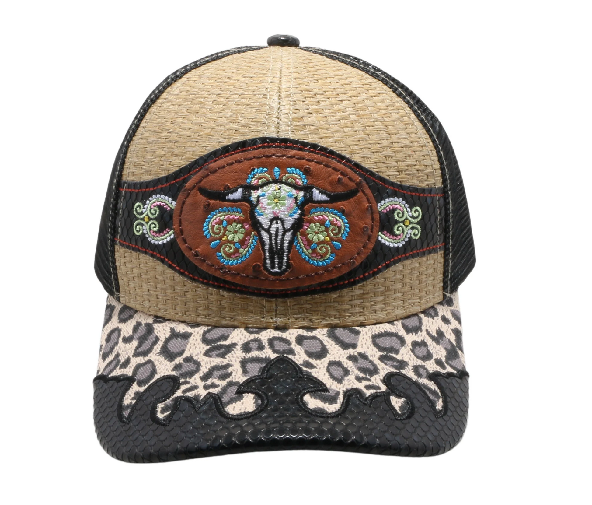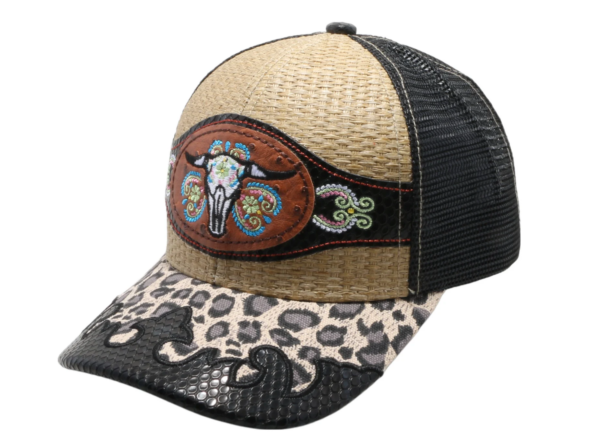 Expertly crafted with breathable straw fabric, this Cow Skull Brown Straw Fabric Trucker Hat is perfect for keeping you cool and stylish in any season. With a classic trucker hat design and timeless brown color, this hat is a must-have for any fashion-forward individual. Grab yours today!