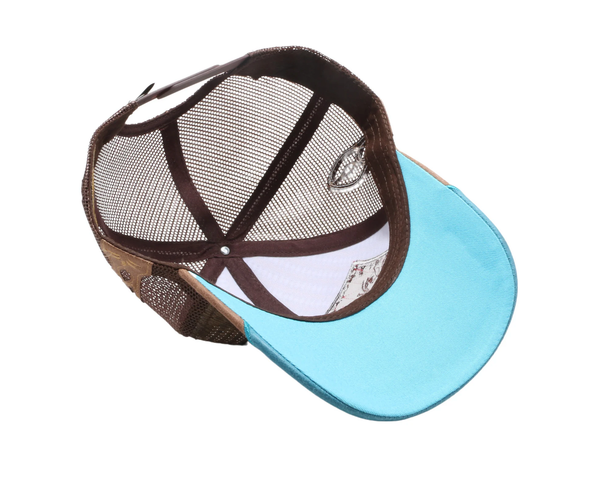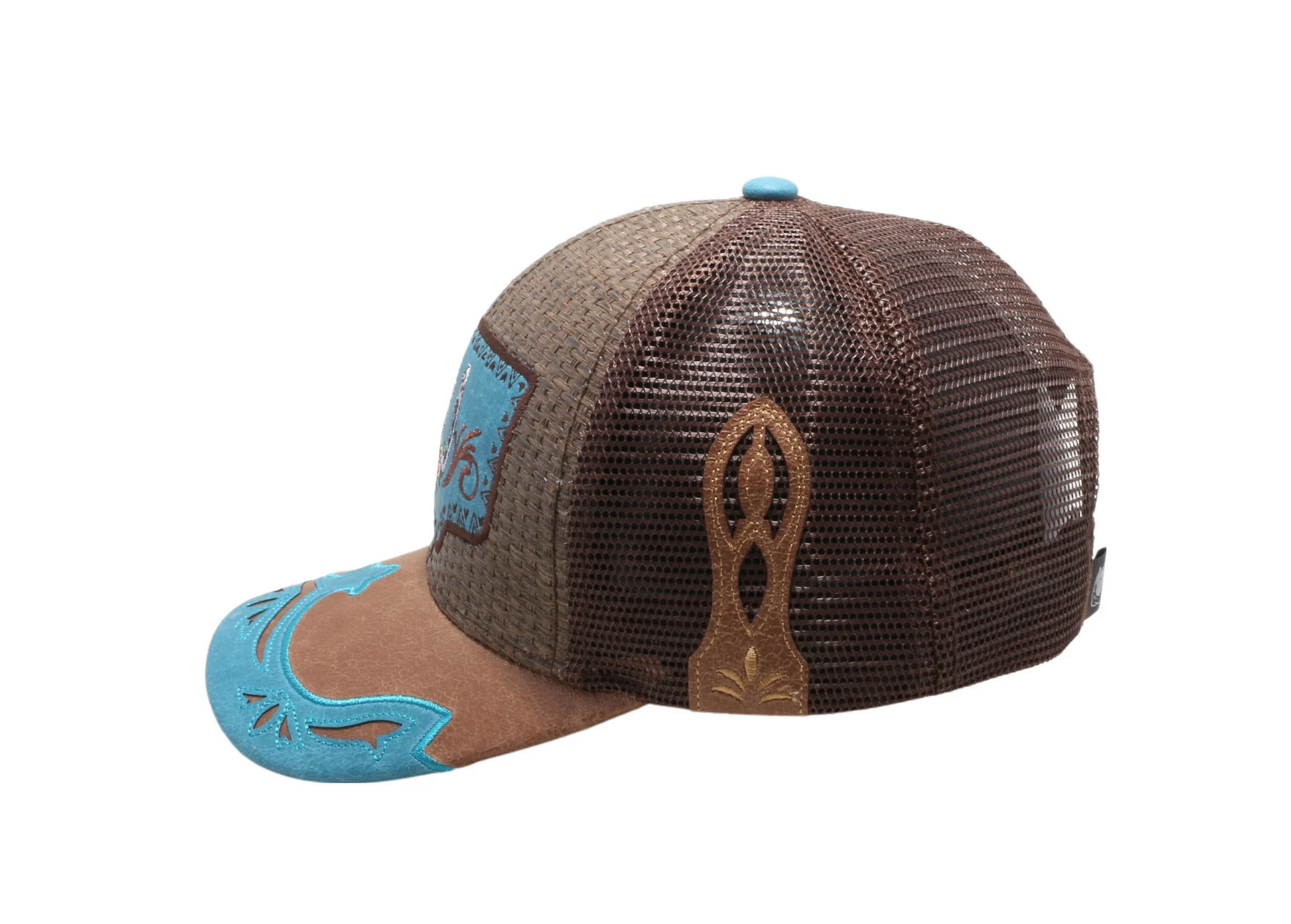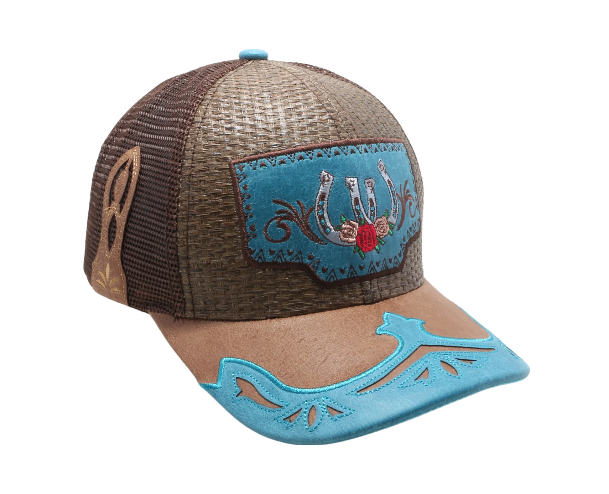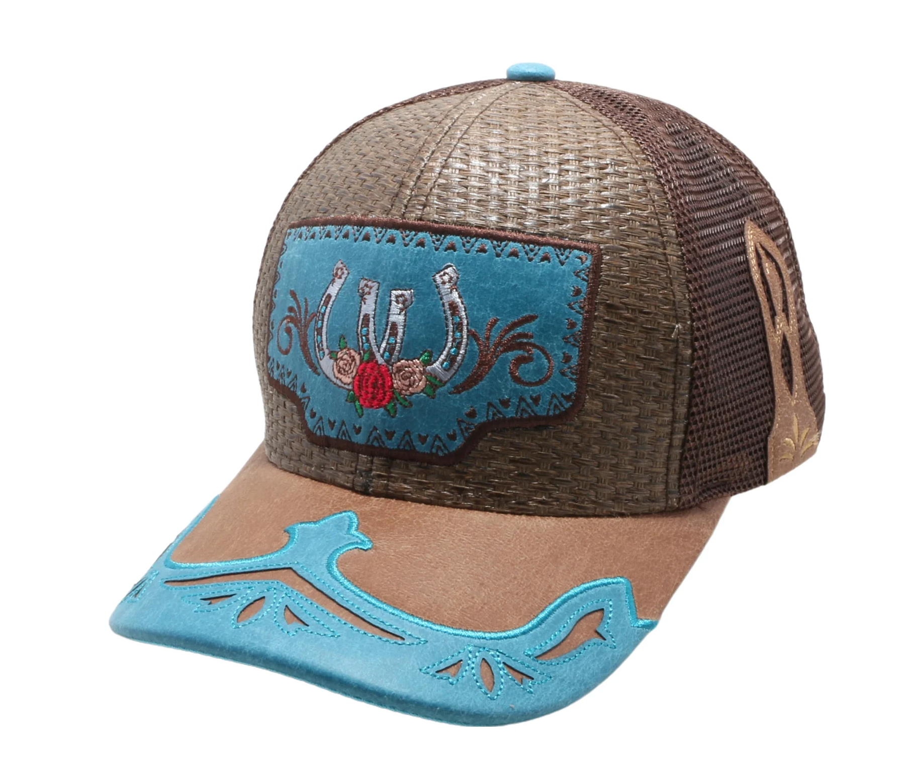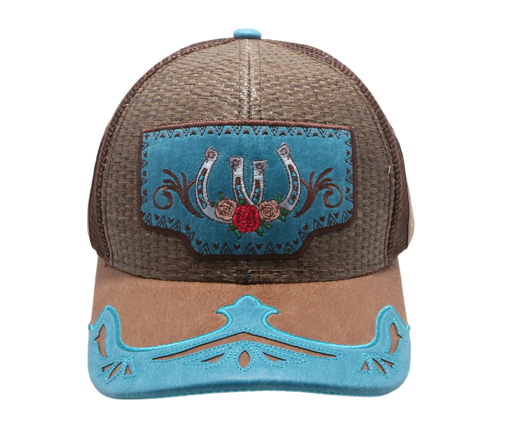 Expertly crafted with breathable straw fabric, this Horse Shoes L.Brown Straw Fabric Trucker Hat is perfect for keeping you cool and stylish in any season. With a classic trucker hat design and timeless light brown color, this hat is a must-have for any fashion-forward individual. Grab yours today!